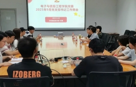 9月29日中午,电子与信息工程学院党委在东校园信息大楼102会议室召开2025年9月党支部书记工作例会。会议通报学院“深入贯彻中央八项规定精神学习教育”工作情况,部署近期重点工作,围绕“新生党员档案核查”开展专题辅导,并组织党支部进行工作经验交流分享。学院党委书记陈省平、党委副书记李敏智、专职组织员林平、党务秘书曾世豪,以及各党支部书记近30人参加会议。会议由学院党务秘书曾世豪主持。