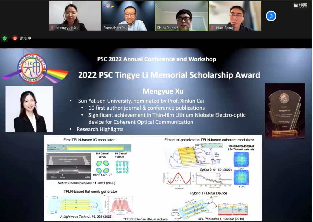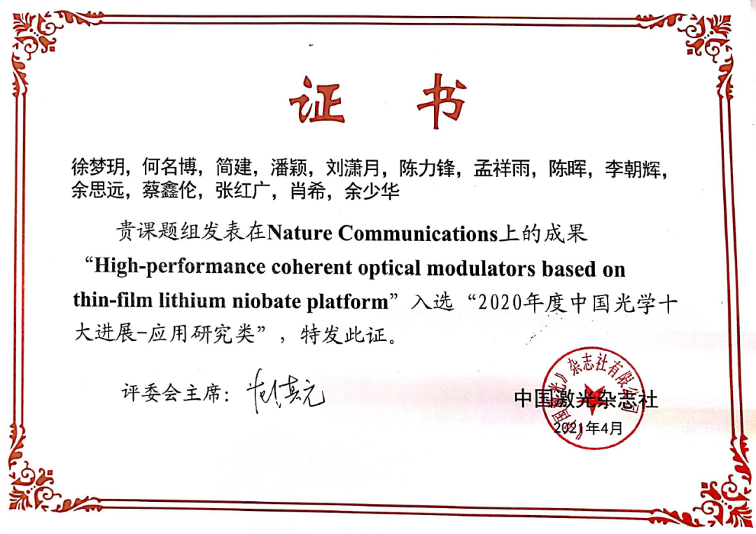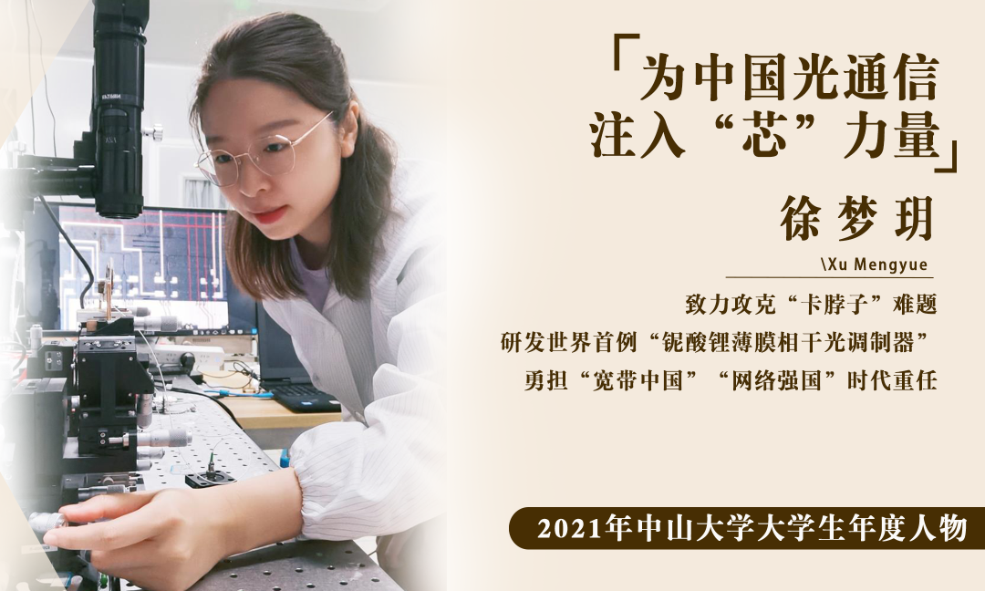 她刻苦钻研,追求卓越,终获世界一流学术科研成果,并受到国内外同行高度认可。通过博士研究生期间攻坚克难,徐梦玥取得了一系列突破性的科研成果,先后研制成功世界首例“铌酸锂薄膜相干光调制器”和世界首例“铌酸锂薄膜偏振复用相干光调制器”,芯片关键指标打破世界纪录。徐梦玥以第一作者的身份发表了6篇高质量、高影响力的SCI国际期刊论文,为国产高端光电子芯片的开发贡献出重要力量。徐梦玥还在光学三大顶级会议——光纤通信研讨会及博览会(OFC)和激光与电光会议(CLEO)上做口头报告六次,向全世界的同行展示自己最新的研究进展。徐梦玥关于世界首例铌酸锂薄膜相干光调制器工作的论文入选ESI 1%高被引论文,并获评2020年中国光学十大进展(应用研究类)。徐梦玥还是厉鼎毅纪念奖学金首位来自中国大学的获奖者,获奖理由为“表彰她在光通讯领域薄膜铌酸锂电光器件项目上的杰出贡献”。