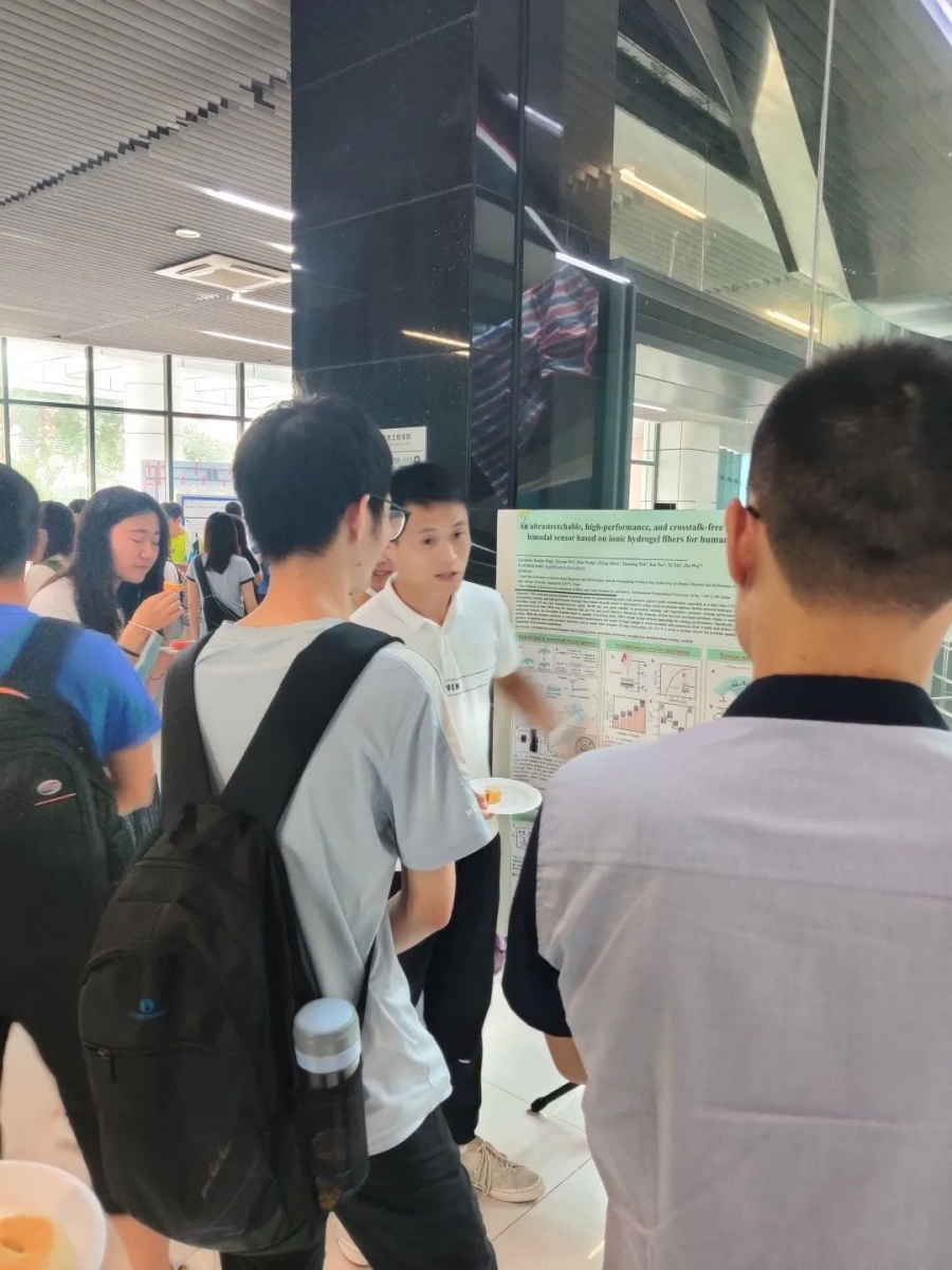 接下来是优秀硕士学生代表进行分享交流。第一位分享者是丁浩钧同学。丁浩钧同学从疫情这几年对他科研方向的影响开始,向同学们介绍了他做科研的三点感悟。第一点是多留意实验过程中的细节,许多意料之外的现象可能会成为重要成果;第二点是科研工作既可以单点突破也可以多点开花,在科研中遇到挫折我们既可以坚持原有思路可以另辟蹊径;第三点是同学们既要学会独立思考,也要早点暴露问题并和周围的人沟通交流。
