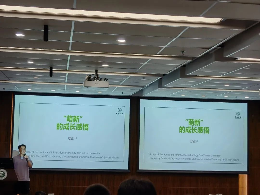 第二位优秀本科学生代表是方正同学,方正同学以自身成长为例分享了如何入门科研事业。首先需要及时主动地联系自己感兴趣的课题组老师;其次,科研学习是一个日积月累的过程,需主动汇报科研进展并且实时获取最新的科研动态;最后是尽量采用高效的学习方法和学习工具、自主动手实践,做到既有知识输入也有成果产出。