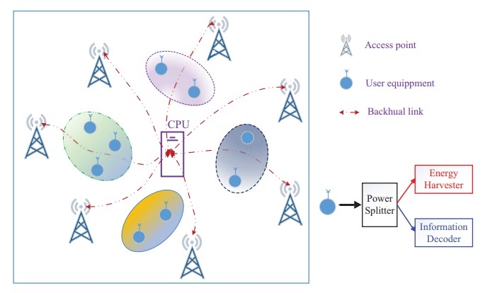 该课题组设计了一项面向无蜂窝大规模MIMO系统的支持信息与能量同传的多播/单播非正交传输技术,并开发出一种高效的一阶算法优化系统无线资源分配,实现以很低计算复杂度获得近似最优的能量效率性能。该项成果可以广泛应用于海量接入的低功耗物联网中。相比于现有的大规模MIMO中的资源分配技术,该成果具有两个关键特性:1)采用基于层分复用的多播和单播非正交传输,可以在同一时频资源上支持海量传输;2)采用一阶算法及相应的加速算法来优化资源分配,计算复杂度低,可灵活支持大规模物联网应用。