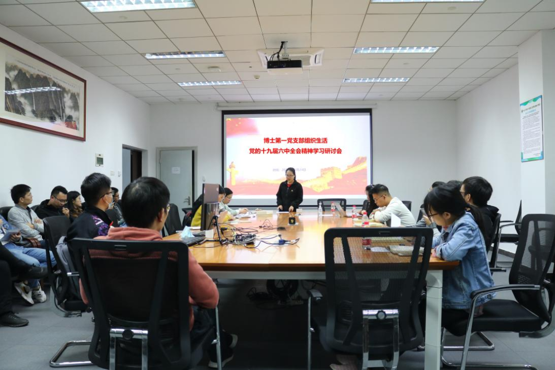 博士第一党支部开展党的十九届六中全会精神学习研讨会现场