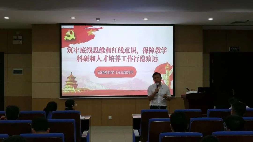 为深入学习贯彻习近平新时代中国特色社会主义思想,推动全面从严治党向纵深发展,教职工第五党支部(学院行政党支部)联合教职工第二党支部开展“筑牢底线思维和红线意识,保障教学科研和人才培养工作行稳致远”的党建、业务“双轮驱动”主题党日活动。由本支部纪检委员作典型案例通报,组织委员讲述研究生管理的风险点防控工作,两个支部共同研讨学习规章制度;有效地进行党员自我教育、自我改造、自我完善,强化党员的规范意识和严谨的治学态度;并有助于改善管理服务工作、提升管理服务效能。