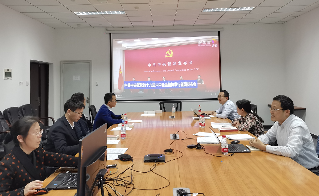 2021年11月29日,学院党委理论学习中心组在学院楼102会议室专题学习党的十九届六中全会精神。中心组成员结合个人自学,联系工作实际进行集中学习研讨。集中学习研讨由学院党委书记刘飞主持。