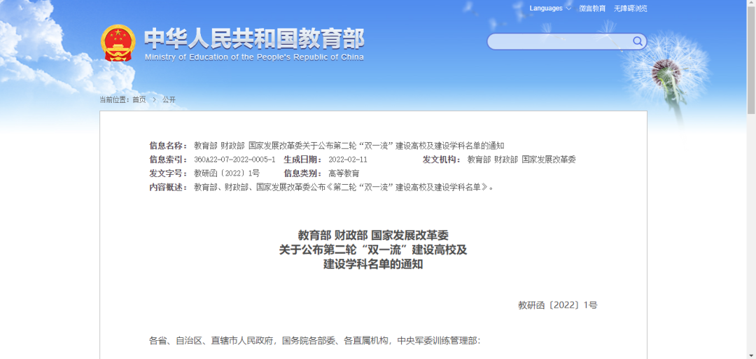 http://www.moe.gov.cn/srcsite/A22/s7065/202202/t20220211_598710.html(点击文末“阅读原文”可跳转阅读)。