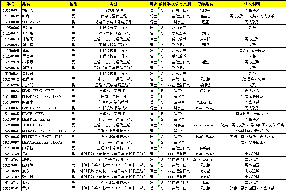 2018春季学期(2019上半年)未注册研究生名单